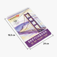Тип товара: скетчбуки для рисования, Серия: Classic, Вид работ: для зарисовок, эскизов, рисования, Количество листов: 20, Формат: 165х240мм, Ширина: 165 мм, Длина: 240 мм, Обложка: твердая, Внутренний блок: ватман ГОЗНАК, Цвет внутреннего блока: белый, Плотность внутреннего блока: 200 г/м2, Жесткая подложка: да, Тип скрепления: гребень, Цвет обложки: с дизайном, Индивидуальная упаковка: да.