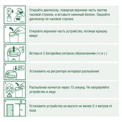 Способ применения: прочитать внимательно этикетку перед использованием и сохранить ее на весь период использования продукта. Вставить баллон в выключенный автоматический распылитель. Всегда направлять струю аэрозоля от лица. Включить – распыление начнется через 15 секунд. Диспенсерная система: AIRWICK, GLADE, KSITEX, Объем картриджа: 250 мл, Серия: REFILL, Отдушка: анти-табак. Код: 600585