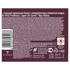 Сменный баллон AIRWICK предназначен для ароматизации воздуха и удаления неприятных запахов в любых помещениях.Наслаждайтесь изысканным ароматом яблоневого цвета и сочной дыни вместе с аэрозольным освежителем AIRWICK Freshmatic серии Life Scents "Райский десерт". Сменный баллон освежителя воздуха поможет поддерживать в доме приятный и свежий аромат. Средство прекрасно борется с любыми нежелательными запахами. Его можно устанавливать на кухне, в ванной комнате или туалете. Аэрозоль не оставляет разводов и других следов на занавесках, мебели и других предметах.
