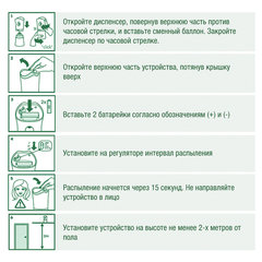 Способ применения: прочитать внимательно этикетку перед использованием и сохранить ее на весь период использования продукта. Вставить баллон в выключенный автоматический распылитель. Всегда направлять струю аэрозоля от лица. Включить – распыление начнется через 15 секунд. Диспенсерная система: AIRWICK, GLADE, KSITEX, Объем картриджа: 250 мл, Серия: REFILL, Многослойный аромат: да, Отдушка: фруктовая. Код: 601851