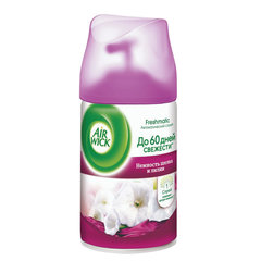 Сменный баллон AIRWICK предназначен для ароматизации воздуха и удаления неприятных запахов в любых помещениях.Освежитель воздуха в сменных аэрозольных баллонах к автоматическому распылителю освежителя воздуха AIRWICK Freshmatic "Нежный шелк и лилия". Самостоятельно распыляет аромат и эффективно устраняет любые неприятные запахи.