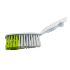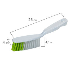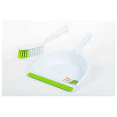 Материал инвентаря: пластик, Длина ручек: 14 см, Ширина совка: 21.5 см, Глубина совка: 27.6 см, Резиновая кромка у совка: да, Высота щетины: 4.5 см, Щетка крепится к совку: да, Отверстие для крючка: да, Цвет инвентаря: белый-зеленый.