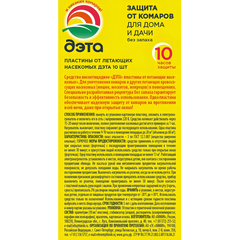 Средство от насекомых Дэта от летающих насекомых пластины (10 штук в упаковке)Назначение. Пластины Дэта от летающих насекомых незаменимы для уничтожения комаров и других летающих насекомых (москитов, мошек) в помещениях. Одна пластина обеспечивает надежную защиту от комаров на протяжении всей ночи.Способ применения. Вынуть из упаковки картонную пластину, вложить пластину в электронагреватель и включить его в сеть с напряжением 220 вольт. Средство начинает действовать через 15-20 минут после включения, полное уничтожение насекомых достигается примерно за 1 час. Нагреватель выключают, пластину сохраняют до последующего использования. Одна пластина рассчитана на работу в течение 9-10 часов в помещении площадью до 20 м? (объемом до 60 м?).Меры предосторожности. Средство применять в отсутствии людей при закрытых окнах (форточках) с последующим проветриванием помещения в течение не менее 30 минут; в присутствии людей использовать средство только при открытых окнах (форточках). Одну пластину использовать в помещении площадью не менее 13 м?. Работающий электронагреватель устанавливать в местах, недоступных детям, вне контакта с посторонними предметами обихода. Не касаться рукой или металлическим предметом нагревательной поверхности, не допускать попадания воды. Не накрывать нагреватель во время работы посторонними предметами. Выключать нагреватель из розетки, когда он не используется. При появлении признаков дискомфортного состояния прекратить использование средства, прибор выключить из розетки, помещение проветривать не менее 30 минут. После контакта с пластиной вымыть руки водой с мылом. При проявлении неприятных ощущений во рту (горечь, сухость) прополоскать 2% раствором пищевой соды.Состав. Праллетрин (10 мг/ пластина), стабилизатор (агидол), растворитель (изопропилмиристат, парафин или изопарафин), краситель, картонная основа.Условия хранения. Хранить в упаковке, в местах недоступных детям, отдельно от пищевых продуктов при температуре от -20°C до +30°C. Использовать средство только по назначению! Использованные и с истекшим сроком годности пластины выбросить в места сбора мусора.Срок годности. 5 лет с даты изготовления. Разрешено для детских учреждений - Нет, Объем, мл/Вес, г - 3, Фумигатор в комплекте - Нет, Форма выпуска - пластины, Тип средства - от кровососущих насекомых, Назначение - против комаров, Страна происхождения - Россия, Для нанесения на кожу/одежду - Нет