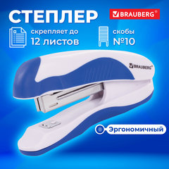 Степлер №10 BRAUBERG "JET PRO", до 12 листов, эргономичный, бело-синий, 228582