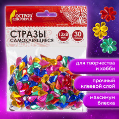 Стразы самоклеящиеся "Капля", 13х8 мм, 30 г, 5 цветов, ОСТРОВ СОКРОВИЩ, 661388
