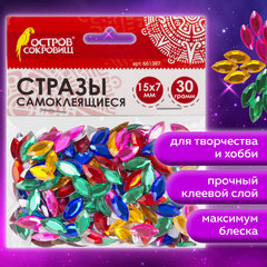 Стразы самоклеящиеся "Лодочка", 15х7 мм, 30 г, 5 цветов, ОСТРОВ СОКРОВИЩ, 661387