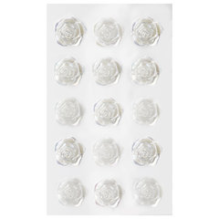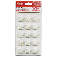 Форма: розы, Цвет: белый, Количество цветов в наборе: 1 шт., Количество в упаковке: 15 шт., Длина: 18 мм, Ширина: 18 мм, Материал: акрил, Тип крепления: самоклеящиеся, На подложке: да, Возрастная группа: старше 3-х лет, Вес: 100 г, Упаковка: пакет с европодвесом.