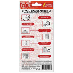 Стразы самоклеящиеся "Розы", белые, 18 мм, 15 шт., на подложке, ОСТРОВ СОКРОВИЩ, 661580