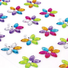 Форма: цветы, Цвет: разноцветный, Количество цветов в наборе: 4 шт., Количество в упаковке: 24 шт., Длина: 20 мм, Ширина: 20 мм, Материал: акрил, Тип крепления: самоклеящиеся, На подложке: да, Возрастная группа: старше 3-х лет, Вес: 100 г, Упаковка: пакет с европодвесом.