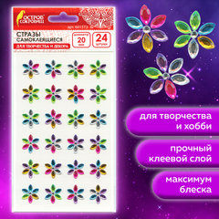 Стразы самоклеящиеся "Цветы", радужные, 20 мм, 24 шт., на подложке, ОСТРОВ СОКРОВИЩ, 661573