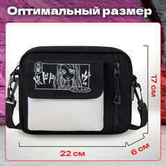 Сумка на плечо HEIKKI SELFIE – компактный и практичный аксессуар для повседневной носки, вмещающий все необходимое: телефон, ключи, документы, наушники и многие другие предметы небольших размеров.Легкая и удобная в использовании сумка на плечо, сумка-мессенджер, барсетка, сумка кросс-боди. Сочетание черного и белого цветов отлично подходит любому стилю в одежде. Трендовый принт в стиле аниме придаст образу неповторимый стиль. Несмотря на компактный размер, вмещает много разных предметов.