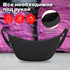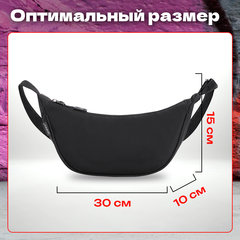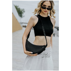 Несмотря на компактный размер, вмещает много разных предметов. Мини-сумка вмещает все необходимое: телефон, ключи, документы, наушники и многие другие вещи небольших размеров. Внутри расположен небольшой карман. Удобная регулировка длины ремня производится с помощью пряжек, выполненных из качественного пластика. Максимальная длина – 119 см. Стильный аксессуар – сумка багет или бананка.