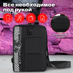 Сумка на плечо HEIKKI TORRENT (ХЕЙКИ) с карманом, "Anime face", черная, 25х18х3 см, 272637