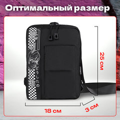 Сумка упакована в плотный ПЭТ-пакет, который сохранит качество и товарный вид при хранении и транспортировке. Количество отделений: 1 шт., Количество карманов внешних: 1 шт., Количество карманов внутренних: 1 шт., Подкладка: да, Цвет: черный, Серия: TORRENT, Дизайн: Anime face, Длина плечевого ремня: 114 см, Регулируемый плечевой ремень: да, Материал: полиэстер, Декоративные элементы: нет, Пол: унисекс, Высота: 25 см, Ширина: 18 см, Глубина: 3 см, Вес: 200 г. Код: 272637