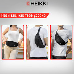 Поясная сумка HEIKKI идеальна для ежедневного ношения, велосипедных прогулок, бега, путешествий. С ней все ценные вещи будут под рукой и не потеряются. Кроме того, это ещё и модный аксессуар, который отлично сочетается с разными стилями.Лаконичная модель универсального черного цвета с двумя отделениями довольно вместительна. Надежная застежка – фастекс – позволяет с легкостью зафиксировать сумку на поясе или плече.