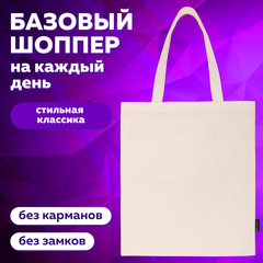 Сумка шоппер BRAUBERG, канвас, 40х35 см, бежевый, 271895