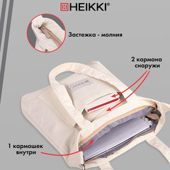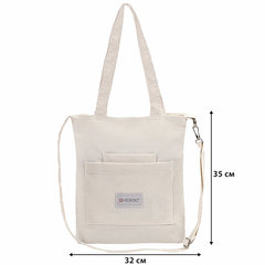 Сумка шоппер HEIKKI VELVET (ХЕЙКИ), вельвет, карманы, 35х32 см, бежевый, 272438
