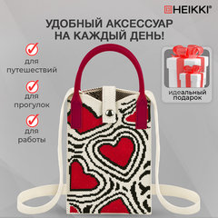 Сумочка-органайзер повседневная HEIKKI KNIT (ХЕЙКИ) кросс боди, вязаная, 17х12х5 см, "Red and black", 273796