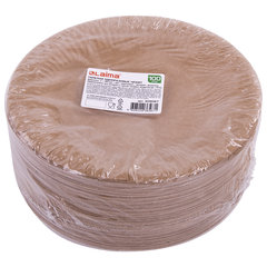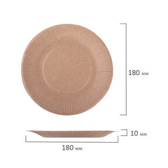 Тарелка одноразовая крафт бумажная 180 мм, КОМПЛЕКТ 100 штук, LAIMA ECO CRAFT, 608087