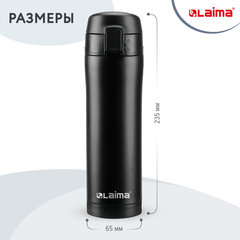 Термокружка LAIMA с двойной стальной стенкой изготовлена из нержавеющей стали марки 304 медицинского уровня. Сконструирована по вакуумной технологии.Термокружка обладает оптимальной формой для фиксации в держателе автомобиля, что позволяет использовать ее во время поездок. Термокружка снабжена откидывающейся крышкой с кнопкой, позволяющей с легкостью использовать ее одной рукой. Также, для защиты от непроизвольного нажатия кнопки, кружка имеет специальный защитный замок-предохранитель.
