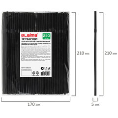 Тип товара: трубочки гофрированные, Длина: 210 мм, Диаметр: 5 мм, Количество в комплекте: 250 шт., Материал: полипропилен, Упаковка: пакет, Цвет: черный.