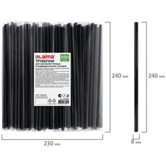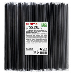 Трубочки для коктейлей прямые в индивидуальной упаковке, 8х240 мм, черные КОМПЛЕКТ 250 штук, LAIMA, 608363