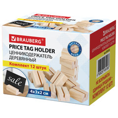 Ценникодержатель деревянный (ценники, реклама, фото) 4х3х2 см, КОМПЛЕКТ 12 шт., BRAUBERG, 291312