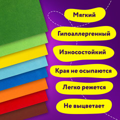 Цветной фетр МЯГКИЙ А4, 2 мм, 8 листов, 8 цветов, плотность 170 г/м2, ЮНЛАНДИЯ, 662050