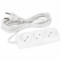 Удлинитель Р16-010, 3 розетки без заземления, 5 м, 2х0,75 мм, 1300 Вт, белый, 564