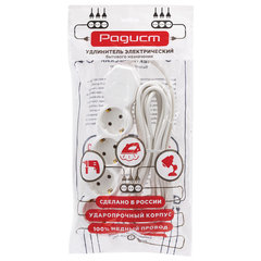 Удлинитель подходит для использования дома, в офисе или на даче. Он предназначен для подключения самых разных электроприборов: от бытовой техники до профессионального инструмента.Колодка на 4 розетки с рядом полезных функций для безопасного и удобного подключения: Длина провода – 5 м. Провод ПВС – сечение 3х0,75 мм2. Защита – встроенная система от скачков напряжения. Безопасность – заземление и корпус из негорючего, ударопрочного РР-пластика. Мощность – выдерживает максимальную нагрузку до 2200 Вт (сила тока – 10 А). Цвет – белый.