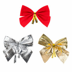 Оригинальным решением украсить новогоднюю ель станут елочные украшения ЗОЛОТАЯ СКАЗКА, выполненные в виде бантиков. Это идеальный выбор для тех, кто хочет добавить в свой праздничный декор нотку волшебства и очарования.Серебристые, красные и золотистые бантики создают элегантную и гармоничную композицию, которая будет великолепно смотреться на вашей елке. Разместите их по всей высоте ели, чтобы создать праздничный ансамбль, который будет радовать вас и ваших гостей на протяжении всего зимнего сезона. Бантики легко и надежно фиксируются на ветвях, не соскальзывая и не теряясь. Они добавят дому или офису нотку роскоши и изысканности.