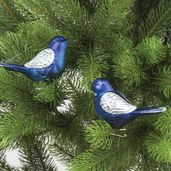 Украшения выполнены в виде птичек и крепятся на новогоднюю ель посредством удобной клипсы. Тип украшения: украшение на прищепке, Количество в наборе: 2 шт., Материал: пластик, Высота: 7 см, Ширина: 11 см, Цвет: синий/серебристый, Серия: Птички, Упаковка: ПВХ-коробка. Код: 590894
