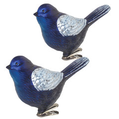 Украшение ёлочное "Птички" 2 шт., 11 см, пластик, цвет: синий/серебристый, ЗОЛОТАЯ СКАЗКА, 590894