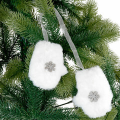 Оригинальным решением украсить новогоднюю ель станут елочные украшения ЗОЛОТАЯ СКАЗКА, выполненные в виде пары пушистых варежек. Это идеальный выбор для тех, кто хочет добавить в свой праздничный декор нотку волшебства и теплоты.Украшения, выполненные в виде пары мягких варежек, придадут вашей елке неповторимый и сказочный вид. Каждая варежка украшена изящной снежинкой, которая переливается и искрится, создавая атмосферу зимней сказки. Украшение в виде варежек будут чудесно смотреться на ветвях вашей елки, напоминая о зимних забавах и добавляя тепла и очарования в любой интерьер дома или офиса.
