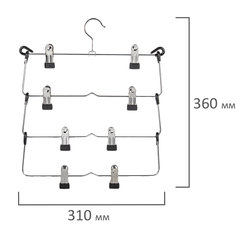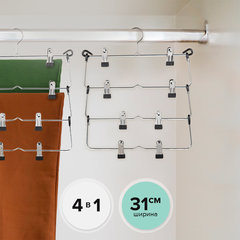 Материал каркаса: металл трансформер, Размер модели: 36-56, Ширина: 31 см, С перекладиной: да, Крепление для брюк и юбок: клипсы, Серия: Трансформер, Количество в комплекте: 1 шт., Цвет каркаса: серый.