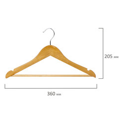 Материал каркаса: дерево, Размер модели: 36-40, Ширина: 36 см, С перекладиной: да, Крепление для брюк и юбок: выемки, Серия: Стандарт, Особенности: невыкручивающийся крючок, Покрытие: лакированное, Количество в комплекте: 5 шт., Цвет каркаса: светлое дерево.