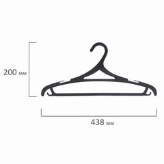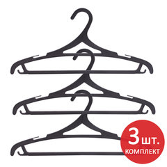 Материал каркаса: пластик, Размер модели: 46-48, Ширина: 43 см, С перекладиной: да, Крепление для брюк и юбок: выемки, крючки, Количество в комплекте: 3 шт., Цвет каркаса: черный.