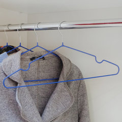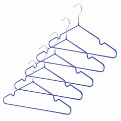 Материал каркаса: металл/ПВХ, Размер модели: 48-50, Ширина: 40 см, С перекладиной: да, Крепление для брюк и юбок: выемки, Особенности: невыкручивающийся крючок, Покрытие: глянцевое, Количество в комплекте: 10 шт., Цвет каркаса: синий.