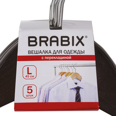 Вешалки-плечики, размер 48-50, КОМПЛЕКТ 5 шт., дерево, перекладина, цвет шоколад, BRABIX "Стандарт", 601162