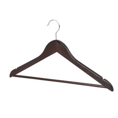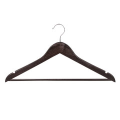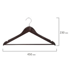 Материал каркаса: дерево, Размер модели: 48-50, Ширина: 45 см, С перекладиной: да, Крепление для брюк и юбок: выемки, Серия: Стандарт, Особенности: невыкручивающийся крючок, Покрытие: лакированное, Количество в комплекте: 5 шт., Цвет каркаса: шоколадный.