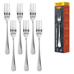 Комплектация – 6 столовых вилок. Тип вилок: столовые, Серия: STANDARD, Количество в комплекте: 6 шт., Толщина стали: 2 мм, Особенности ручки: металлическая, Стиль: классический, Материал: нержавеющая сталь, Длина: 205 мм, Цвет: серебристый, Упаковка: коробка. Код: 609078