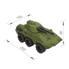 Тип товара: транспорт игрушечный пластиковый, Вид: БМП "Скорпион", Количество в комплекте: 1 шт., Возраст: 3 лет, Цвет: хаки, Материал: пластик, Серия: Военный транспорт, Длина: 20 см, Ширина: 10 см, Высота: 9 см, Упаковка: без упаковки.