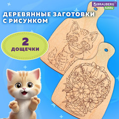 Заготовки деревянные разделочные для выжигания с рисунком, 2 шт., 28х19х0,3 см, BRAUBERG HOBBY, 665311