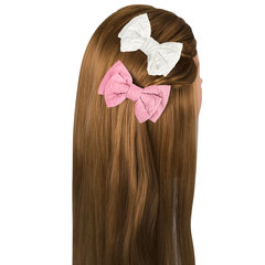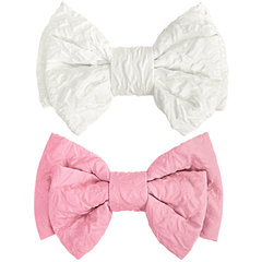 Тип товара: заколка для волос, Цвет: розовый/белый, Тип покрытия: нет, Тип заколки: зажим, Декор: бантик, Набор: да, Количество в наборе: 2 шт., Размер: 10х6,5 см, Материал: металл/полиэстер, Серия: -, Упаковка: картонная карточка с европодвесом.