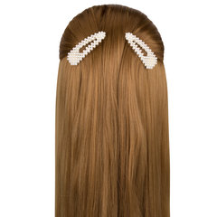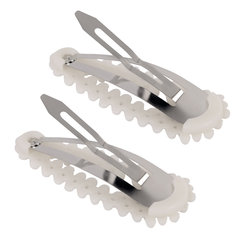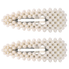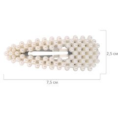 Тип товара: заколка для волос, Цвет: белый, Тип покрытия: глянцевый, Тип заколки: клик-клак, Декор: жемчужинки, Набор: да, Количество в наборе: 2 шт., Размер: 7,5 см, Материал: металл/полистирол, Серия: -, Упаковка: картонная карточка с европодвесом.