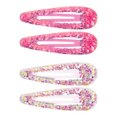 Тип товара: заколка для волос, Цвет: розовый, Тип покрытия: с блестками, Тип заколки: клик-клак, Декор: блестки, Набор: да, Количество в наборе: 4 шт., Размер: 5 см, Материал: металл, Серия: -, Упаковка: картонная карточка с европодвесом.