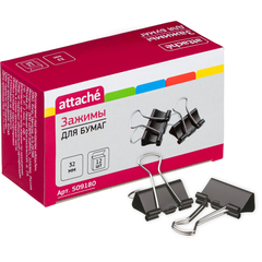 Металлические зажимы для бумаг Attache используются для скрепления документов без использования степлеров. Зажимы из металла с черным покрытием. Размер зажима: ширина 32 мм, высота 51 мм, глубина закладки 15 мм. Позволяет скреплять до 140 листов плотностью 80 г/кв.м. Зажимы для бумаг поставляются по 12 штук в картонной упаковке. Зажимы мягко скрепляют большое количество листов, не оставляя следов после удаления и не повреждая бумагу. Для эффективного скрепления максимально допустимого объема листов бумаги необходимо, чтобы листы были собраны в ровную стопку без заломов, загибов и дефектов поверхности бумаги. Кол-во штук в единице продажи - 12, Количество скрепляемых листов - 140 ЛИСТ, Тип упаковки - картонная коробка, Тип зажима - классический, Страна происхождения - Китай, Код КТРУ (каталог товаров, работ и услуг) - 25.99.23.000-00000022, Размер, мм - 32, Единица продажи - упаковка, Материал корпуса - металл, Цвет - черный, Ширина зажима, мм - 32
