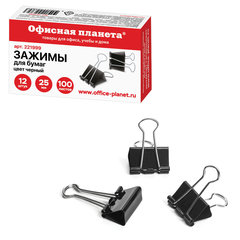 Зажимы для бумаг ОФИСНАЯ ПЛАНЕТА предназначены для скрепления документов без использования степлера.Изготовлены из стали с черным покрытием. Позволяют скреплять до 100 листов. Не деформируют бумагу. Ширина зажима - 25 мм. Поставляются по 12 штук в картонной коробке.