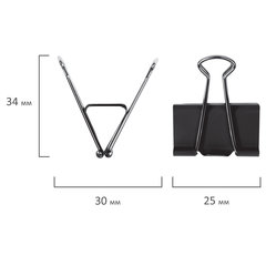 Максимальное кол-во скрепляемых листов: 100, Тип зажима: классический, Ширина: 25 мм, Цвет: черный, Количество в упаковке: 12 шт., Тип упаковки: картонная коробка, Серия: Standard.