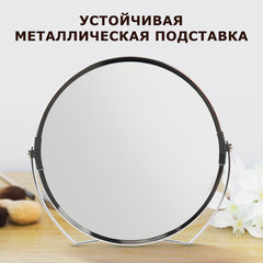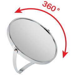 Тип размещения: настольное, Форма: круглая, Высота: 17 см, Ширина: 17 см, Двухстороннее: да, С увеличительным эффектом: да, Тип регулировки положения: нет, Вращающееся: да, Объем аккумулятора: без подсветки, Материал оправы: хромированная сталь, Цвет оправы*: серебристый, Цвет оправы: серебристый.